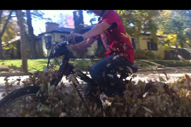 Today was a blur of leaves and sunshine, quite literally: Junior ‘stash learned the joy of making his Dad rake up 4-foot-tall piles of dry leaves in the middle of the road so he could get a long run at them on his bike and smash through at top speed while I took videos.